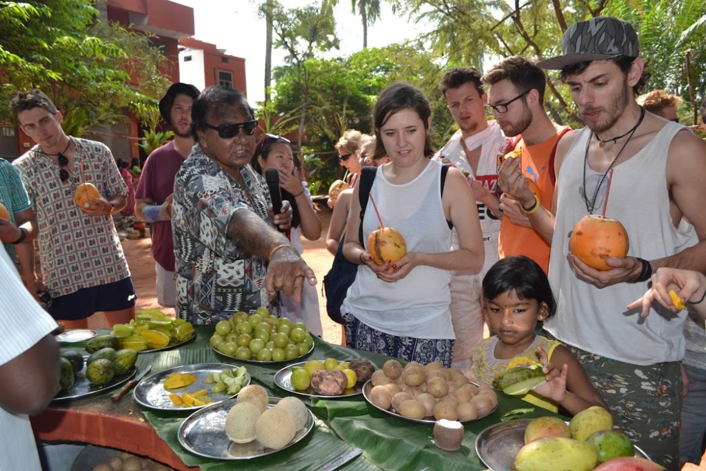 The participants had chance to enjoy tender coconut water as a welcome drink and they had the opportunity to taste various exotic fruits grown on the farm. A special, fermented palm drink was served for the teams and there was a demonstration on how to cut up Jack fruit. Then, Mr. Bremanandam, the creator of the farm took our teams around the place and showed them the various trees and plants he had developed over the years.