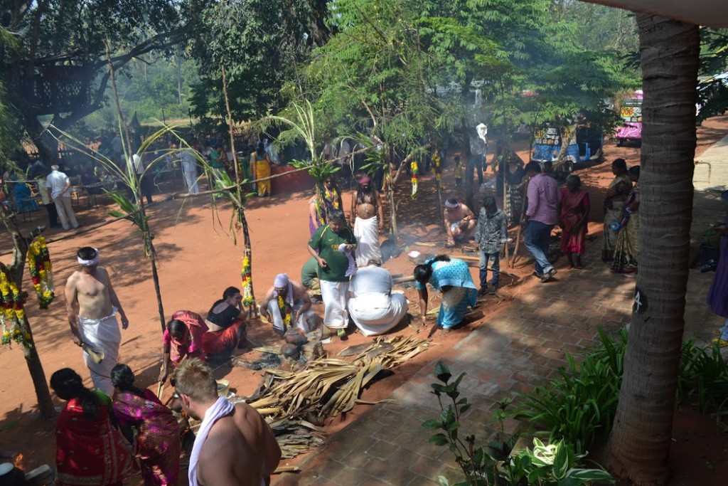 Celebrating Pongal was the next program of the day. Teams were offered dhoti and sarees, the traditional South Indian wear, and were asked to make Pongal with ingredients provided by us. During the next hour, the teams toiled around the natural earthenware and fire to make the delicacy.