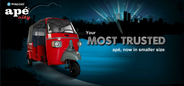 Piaggio India has launched the Ape passenger three-wheeler to take down Bajaj’s autorickshaws. The Autorickshaw comes with three engine options: petrol, LPG and CNG fuels thereby making it a choice for a large number of autorickshaw buyers.