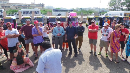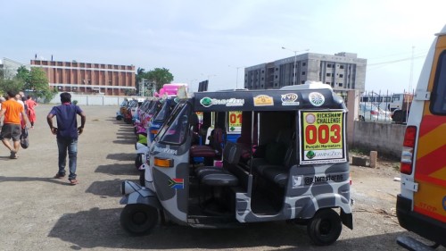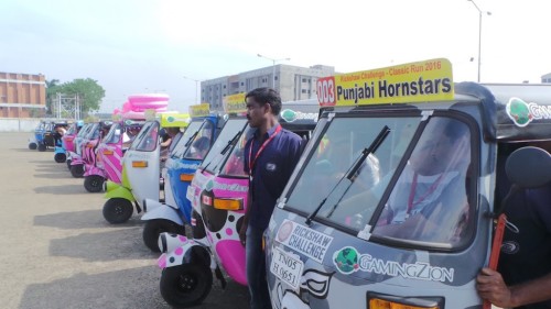 The Practice session was filled with laughter and fun; all the teams had a small problems of some or the other. Almost all the vehicles had a back gear problem, keeping the Chennai Garage people busy until the teams left the Practice Ground. As usual, some of the teams picked up the art of driving a rickshaw really fast, while others struggled a bit. In the evening, the Travel Scientists organized a dinner party to welcome our racers. It was a party that most of the people didn’t want to leave, even after we politely asked them to do so. The situation resembled the line from the song called Hotel California: “You can check in at any time you like, but you can never leave.” The amazing first day came to an end when our racers realized that they will have to be driving the next morning. Later on, in the middle of the night, one of the rally organizers got a call from Jack from “Are We Nearly There Yet”: his girlfriend didn’t return to the hotel they were staying in. Thankfully, a quick shout-out was made in the Classic Run’s Facebook Group and the situation was quickly resolved.