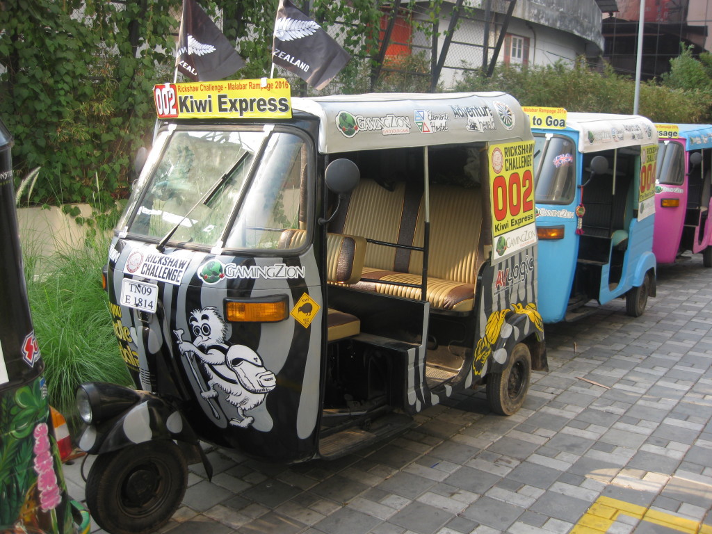 The Rickshaw Challenge Malabar Rampage 2016 has finally kicked off Monday morning, after a last briefing by The Travel Scientists. Participants dressed up in crazy-cool costumes – one way to make points and get ahead of the competition. You can soon check out the scores of each team here. Some might have regretted their costume choice, like the Team Butt, Sweat and Tears, wearing inflatable sumo ringer suites, which make for a great sauna, or the Beast from Team Beauty and the Beast, who were sweating already in the early morning hours under their shaggy masks. Thankfully, they still had enough persistence to manage the day’s first challenge: making chai in a local tea stall with flying colours and fully dressed up.
