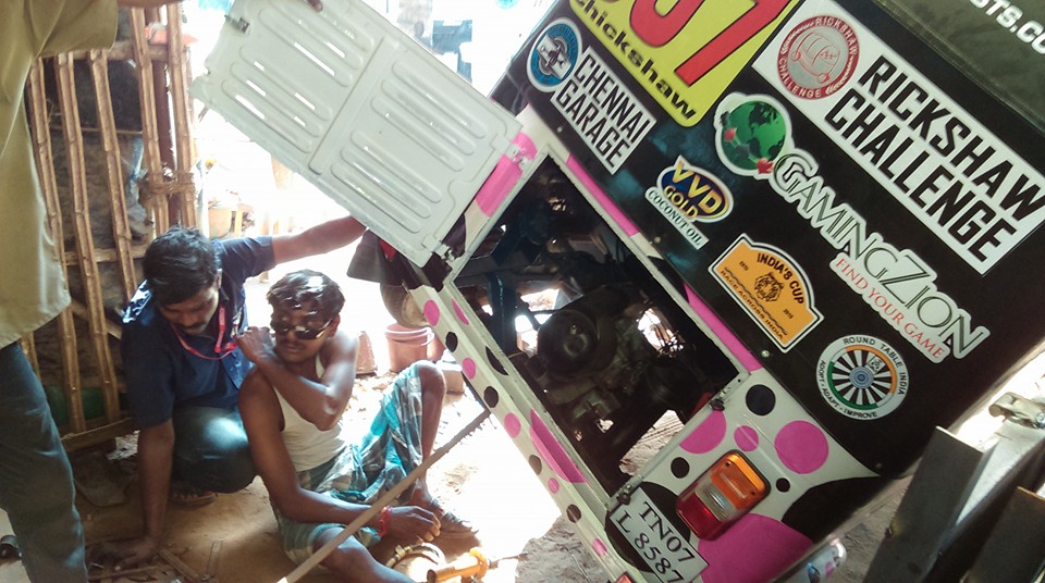 We had a major break down early on….when the bottom fell out of the rickshaw. We were happy we purchased the deluxe package and had the Chennai Garage folks help us to find a nearby welder to fix it. It was a major job. We also had a flat tire in a very isolated village while lost, trying to find a temple on our daily challenges. The entire village came out to help us change it. They had us bless their babies and thanked the gods for the visit from the white angels. It was a most unique experience. We were thankful for the nightly check ups. And we never ran out of petrol!!