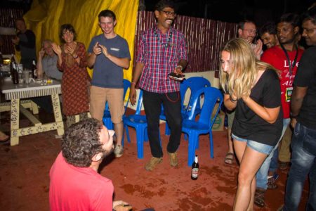 Then we moved on to the last segment of the event, the party. The Elements Hostel terrace ‘Muthu mess’ has hosted several memorable parties and it lived up to its name. I just thanked the Chennai Garage staff and gave them mementos distributed by the teams. A surprise element to end the note was a romantic proposal of Team 13 Daft Trunk Garage. Rito, one of the friendliest persons on the trip, proposed to his partner in Rickshaw Challenge, Gudi. The words are still in my years, “If we could survive this challenge, we probably survive the life challenge and would you be my love?” As the team name is inspired by the Daft Punks band and their, theme song is “Getting Lucky”.