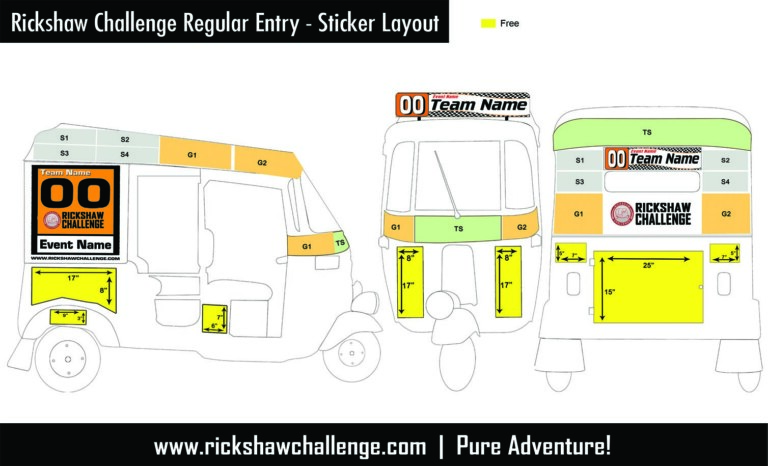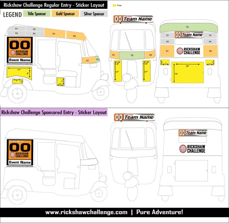Sponsor stickers are attached to every team’s autorickshaw and have to be carried during the entirety of the event. Read the ‘ 6.Personal Sponsors ‘ section in the Rickshaw Challenge – Terms and conditions for more details.